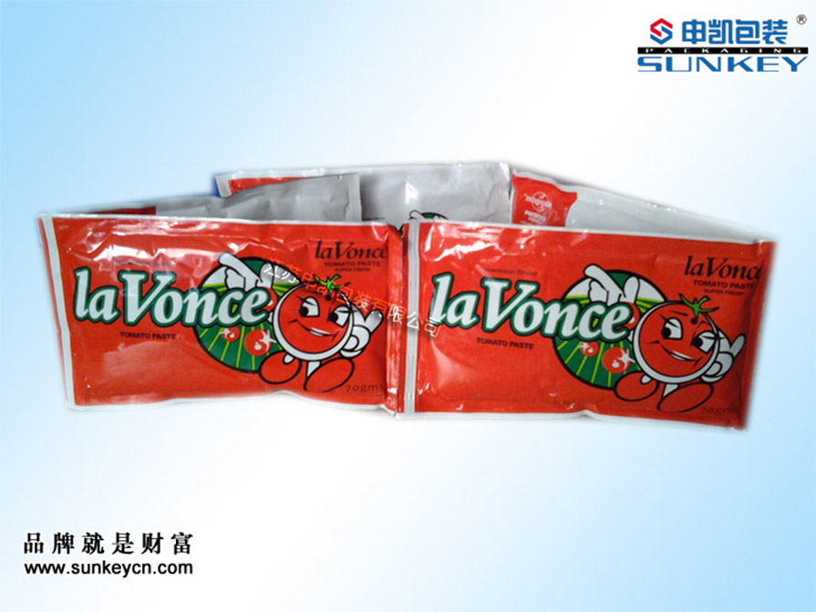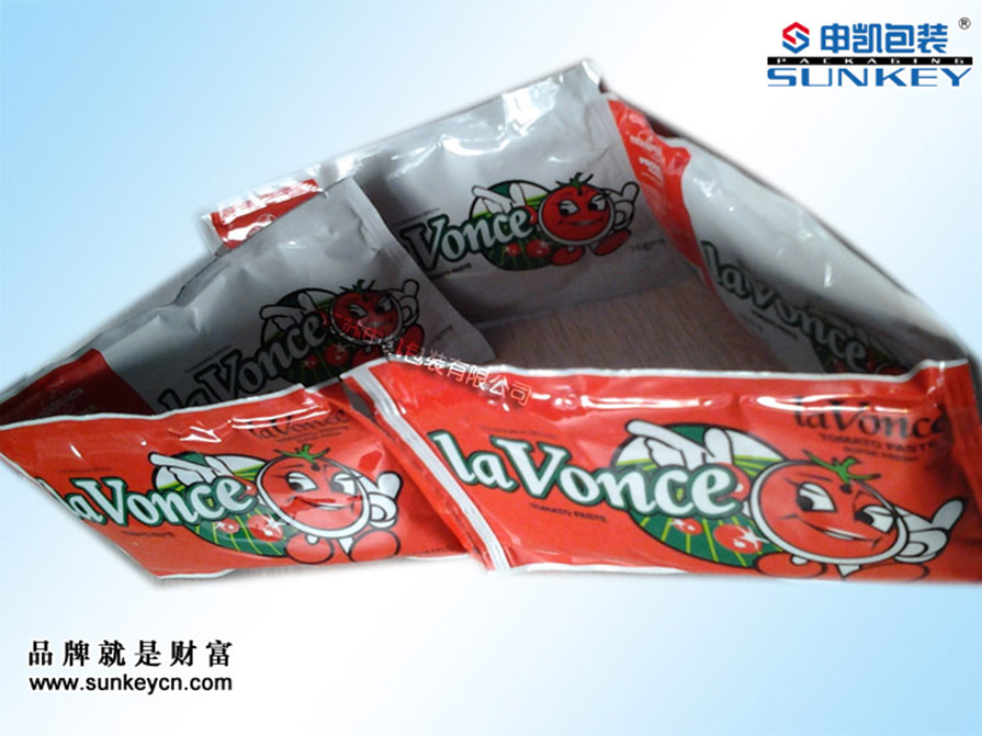 番茄醬袋材質:1、NY/PE 2、PET/NY/PE 3、PET/AL/NY/PE 其主要含鋁箔